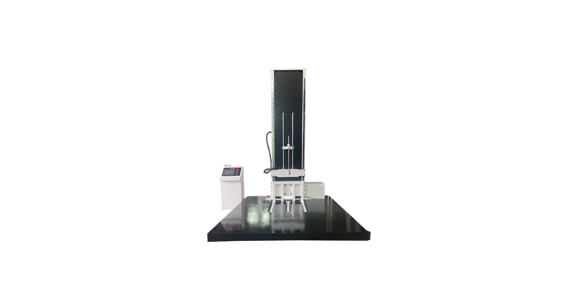 专用于试产品包装受到坠落之受损情况,及评估运输搬运过程时耐冲击强度,对包装件的面、角、棱作自由跌落试验,配备数显高度显示仪及采用译码器进行高度跟踪,从而能精确地给出产品跌落高度,与预设跌落高度误差不超过2%或10mm。本机采用单臂双柱结构,具有电动复位、电控跌落及电动升降装置,使用方便;单臂设置,可方便地放置产品